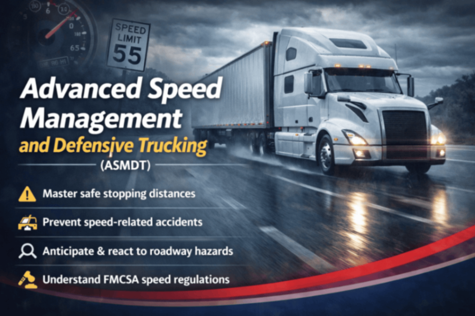 Speed is power — and in commercial driving, it’s also responsibility. The Advanced Speed Management and Defensive Trucking (ASMDT) course is designed to help professional CDL drivers understand the physics behind motion, mass, and momentum — and how these forces affect safety, control, and stopping distance. Through a blend of scientific principles and real-world defensive techniques, drivers learn to manage vehicle speed intelligently, anticipate hazards, and prevent collisions before they happen.
